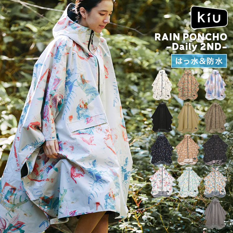レインコート ポンチョ KiU キウ K405 レディース メンズ 撥水 防水 耐水圧10000mm 軽量 リュック対応 フード ツバ付き 前開き 収納袋 コンパクト レインポンチョ レインウェア 合羽 カッパ 雨合羽 雨具 大人 ブラック 黒 ベージュ 総柄 おしゃれ 自転車 通勤 通学 フェス