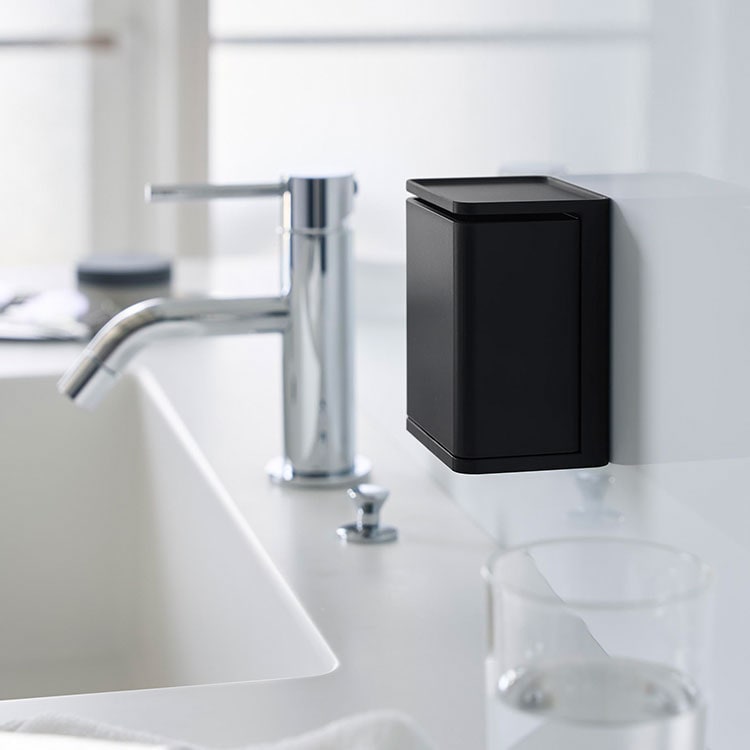 山崎実業 フィルムフックマウスウォッシュディスペンサー&ミニタンブラー タワー 公式 tower 10539 10540 ホワイト ブラック マウスウォッシュ ケース 詰め替え 入れ 口臭ケア カップ コップ付き 壁付け 330mL 洗口液 おしゃれ シンプル 浮かせる 収納 洗面台 詰替容器