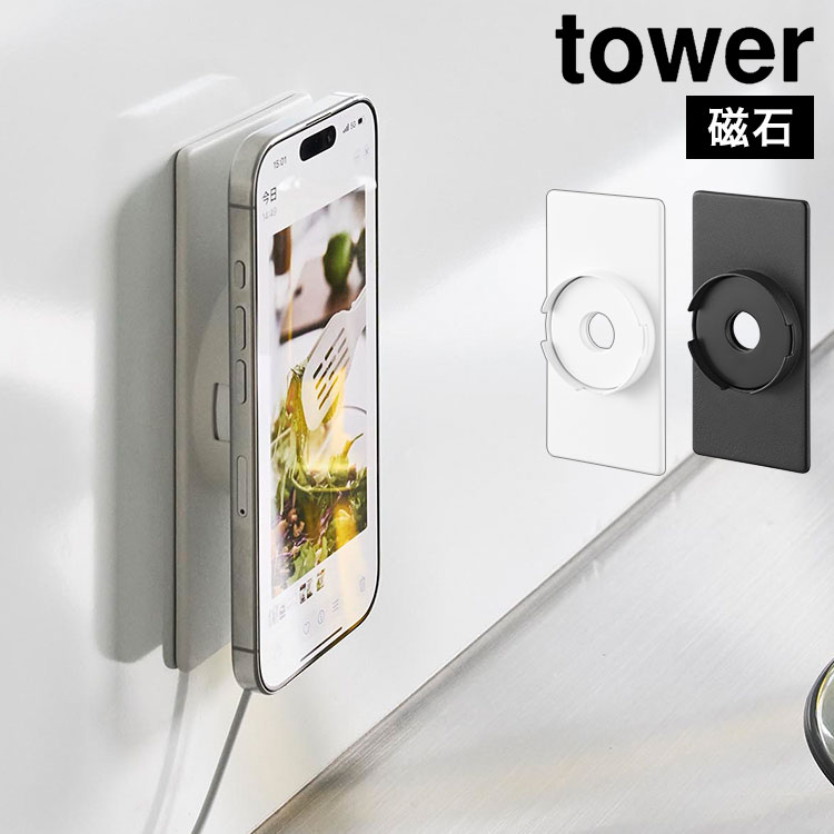 山崎実業 マグネットスマートフォン充電ホルダー タワー 公式 tower 10086 10087 ホワイト ブラック スマホホルダー magsafe対応 充電 磁石 マグセーフ 壁付け iPhone シンプル スタイリッシュ おしゃれ 浮く 縦向き 横向き貼り付け くっつく 壁掛けスタンド スマホスタンド