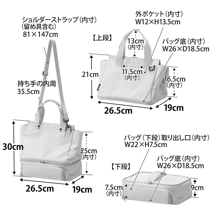 ※下段バッグのみの仕様です。上段は普段使いのバッグとしても活躍します。