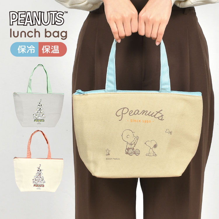 スヌーピー ランチトート 保冷 バッグ かわいい おしゃれ キャラクター ランチバッグ お弁当バッグ SNOOPY 保冷バッグ お弁当 小さめ トートバッグ ファスナー マチ付き 内ポケット カーキ ブラウン 高校生 中学生 通勤 通学 シンプル 子供 大人 女子 男子 レディース メンズ